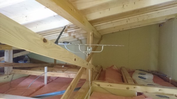 地デジは天井裏に、BSは黒のアンテナを施工しました。