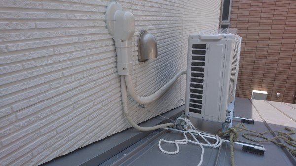 今日は城南区でコンセント、電圧切り替えてをしました。その後、大野城市新築🏠🆕✨でエアコン2台工事をしました。リピーター様で2回目の訪問になります。いつもありがとうございます>^_^<1台は屋根置きでした。