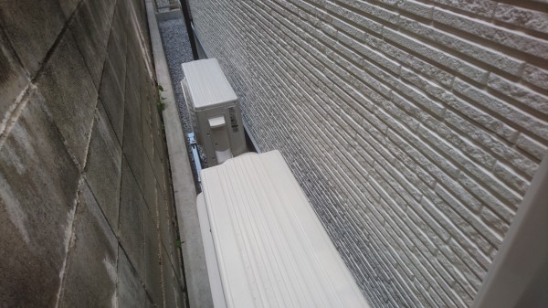 もう1台は2階~1階にたち下げ工事で、室外機の前にブロック塀がありましたので高置き台を施工しました。