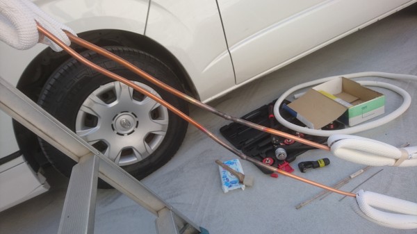 今日は西区の新築🏠🆕✨でエアコン2台工事をしました。2階からのたち下げ工事で配管が足りなかったので無駄に追加が出ないように溶接しました。