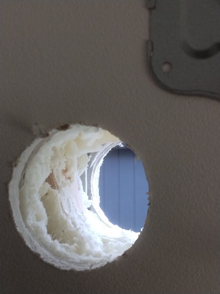 吹き抜けの上からの景色です。筋交いがクロスで入っていたのでピンポイントでコア抜きをしました。