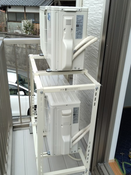 今日は南区リノベーション住宅でエアコン3台工事をしました。柱1本残した程度でほぼ新築🏠でした。3階のエアコンと2階のエアコンを2段置き施工しました。