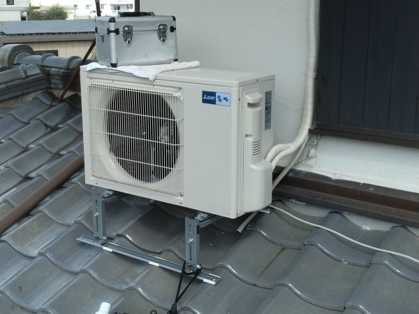 その後、朝倉市でエアコン工事をしました。屋根置き工事でした。