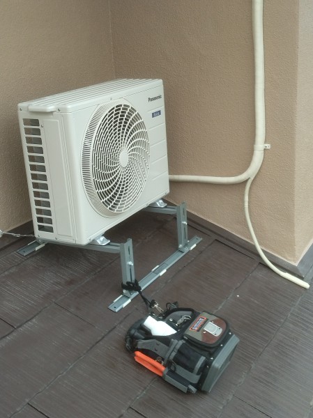 その後、宗像市でエアコン工事をしました。こちらもリピーター様で2回目の訪問になります。いつもありがとうございます。室外機屋根置きでした。