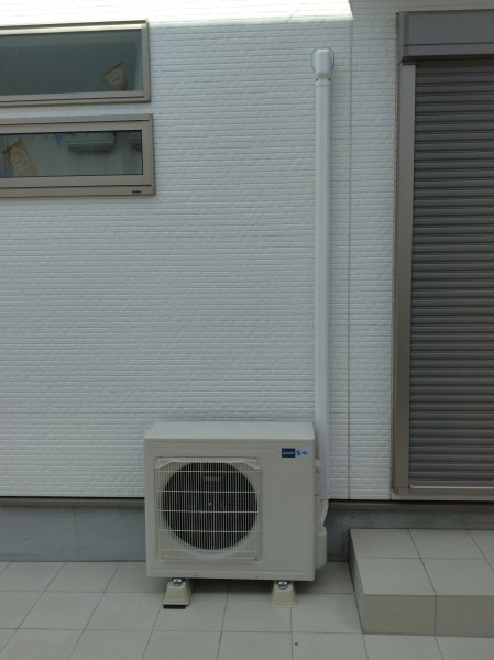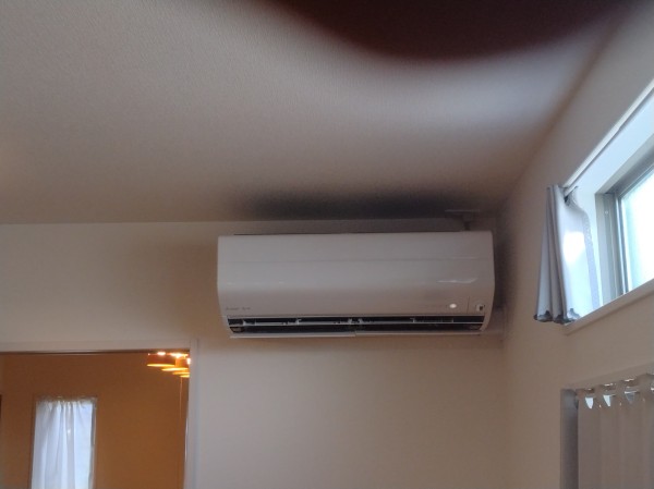 その後、同じく久留米市でエアコン工事をしました。6.3kのリビング用エアコン工事をしました。横出しで室内配管カバーを施工しました。
