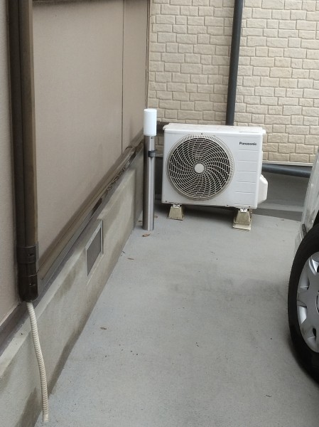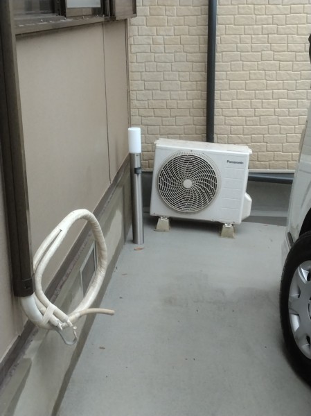 今日は久留米市で室外機の取り付けをしました。以前、外構の為に取り外し今回溶接して位置を変えて施行しました。