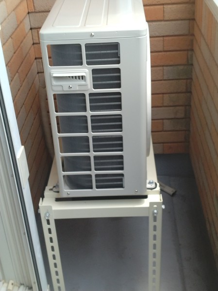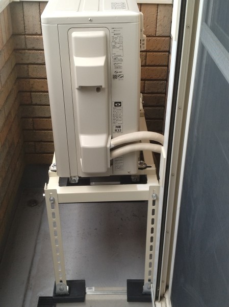 今日は鳥栖市でエアコン2台工事をしました。ベランダ施工でお客様準備の台の上に施工しました。
