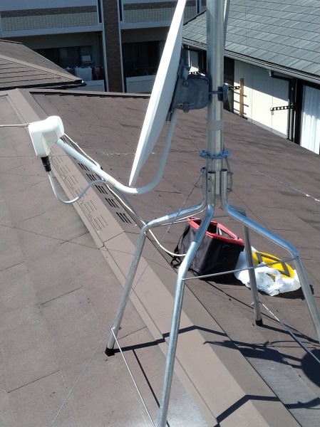その後、太宰府市でBSアンテナの調整に伺いました。台風のたびに動いて調整してましたので今回は集合住宅で使う用なBS用の屋根馬を使用しました。