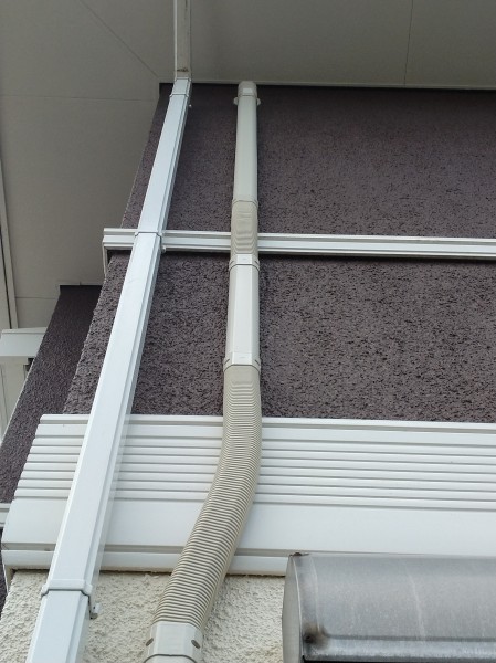 その後、筑紫野市でエアコン工事をしました。リピーター様で3回目の訪問になります。いつもありがとうございます✨2階〜1階に立ち下げ工事でアイボリーの配管カバーを施工しました。