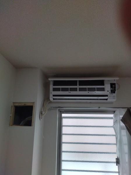 今日は糸島市でエアコン2台工事をしました。壁の中に配管を通しての工事でした。
