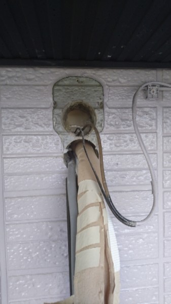 以前付いていたエアコンと高さが合わなかったので穴を空け直しました。