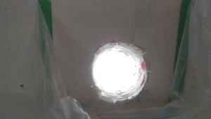 今日は、筑前町でエアコン2台工事をしました。1台は2階から1階にたち下げ工事をしました。もう1台は、リビングで、うるるとさららの6kの取り付けでした。加湿ホースがあり、配管も太いので、75パイのホルソで穴を空け直しました。