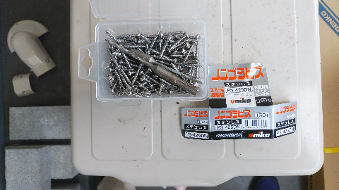 分かりにくいですがコンクリートに2箇所アンカーを打ち込みます。