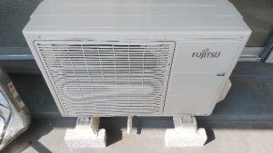 室外機は段がありましたのでブロックと防振ゴムで水平にしました。