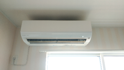 今日は東区でエアコン工事をしました。2階から1階に立ち下げ工事でアイボリーの配管カバーを施工しました。