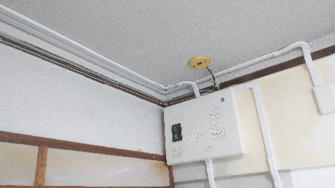 団地でしたので専用回路こうじは露出配線になりました。
