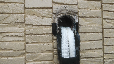 今日は南区でエアコン4台と地上デジタルアンテナ工事をしました。1台既存の穴の位置が合わず楕円形にして施工しました。
