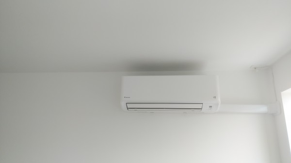 今日は、小郡市の新築でエアコン4台工事をしました。3台はたちさげ工事でリビングは6,3kのエアコンを取り付けました。カーテンレールのからみがあり室内配管カバーを付けて離して取り付けました。