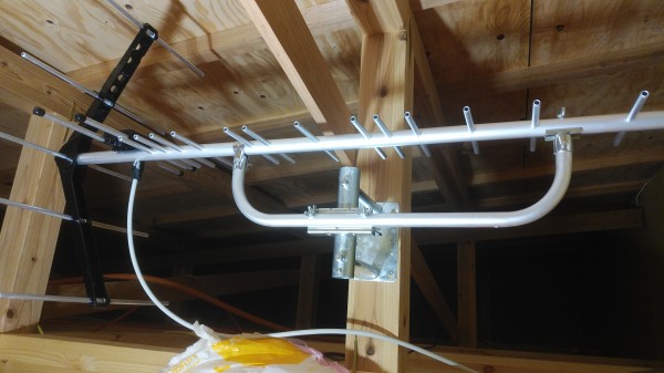 アンテナ工事は電波が強かったので天井裏に施工しました。
