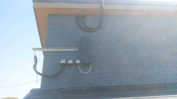今日は、早良区でエアコン工事をしました。炭酸水ありがとうございました!(^^)!その後、久留米市新築で地デジ工事をしました。黒のデザインアンテナ工事をしました。