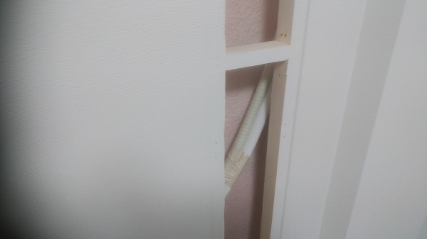 壁の中に配管を通しましたので断熱ドレンを施工しました。