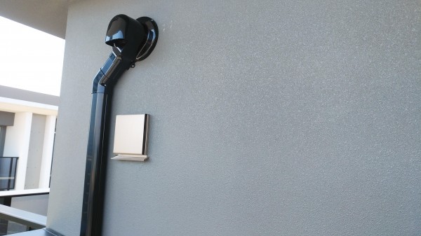外部は黒の配管カバーを施工しました。