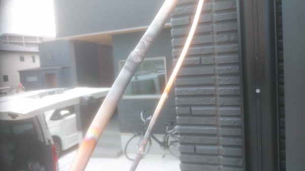 8kwのエアコンで配管が太いので外部で溶接をしました。